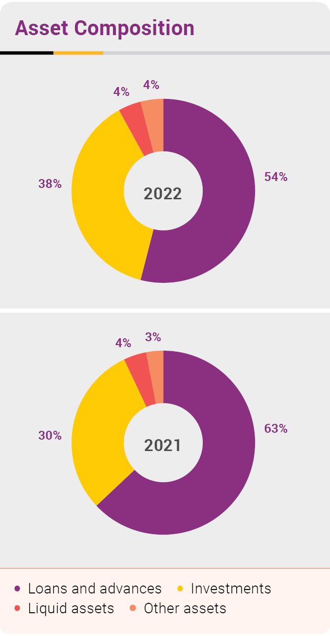 While debt and other instruments grew by a significant 44% to LKR 1.6 trillion in 2022, net loans and advances saw a decline of 4%, primarily driven by the high interest regime and challenging economic conditions that resulted in a moderate credit appetite.