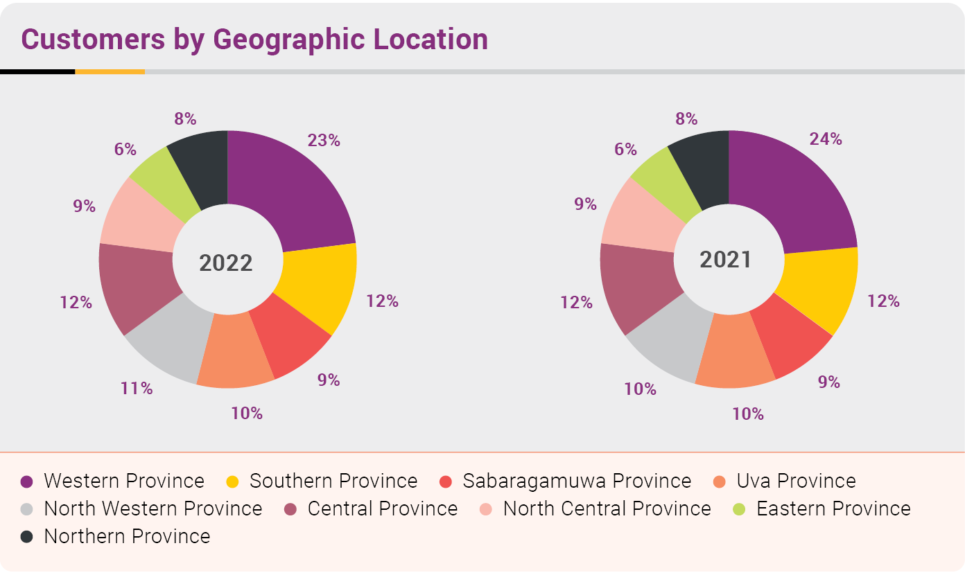 A diverse customer base is at the centre of BoC’s business model and ability to create long-term value. In a challenging year, Bank of Ceylon displayed valuable commitment to its customers, providing wide-ranging concessions and working diligently to revive and rehabilitate businesses; bolstering value chains and jobs across the Country.
